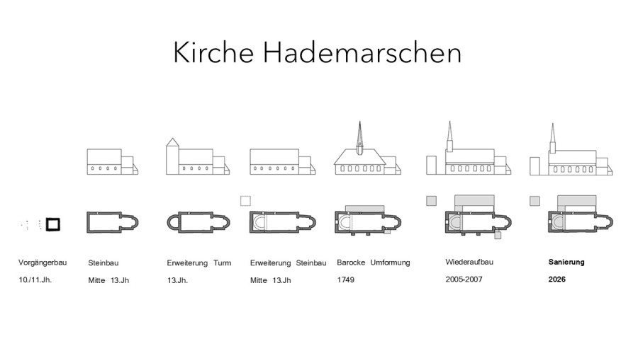 2026 wieder Gottesdienste in der dann neu zugericteten Kirche in Hademarschen feiern können. Und dann wird unsere Gemeinde im 7.Kirchbau ihrer Geschichte Gottesdienste feiern. Wir freuen uns